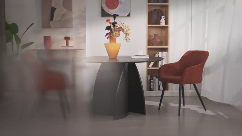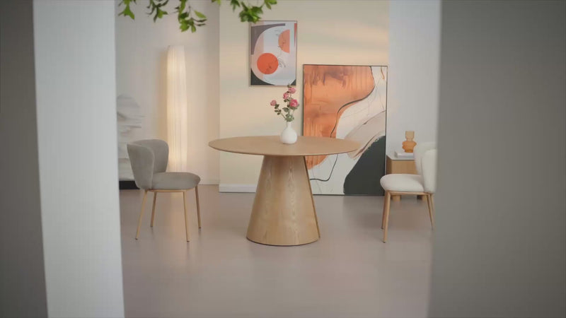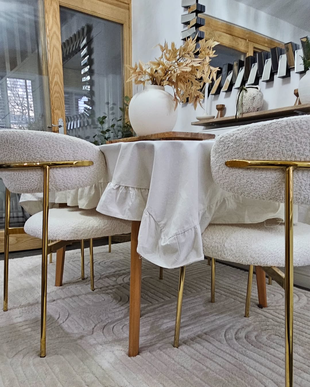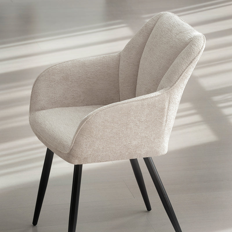 Dankzij de brede, licht gebogen rugleuningen en luxueuze linnen stof brengen de Karin stoelen van OFCASA de sfeer van een boetiekhotel rechtstreeks bij u thuis.