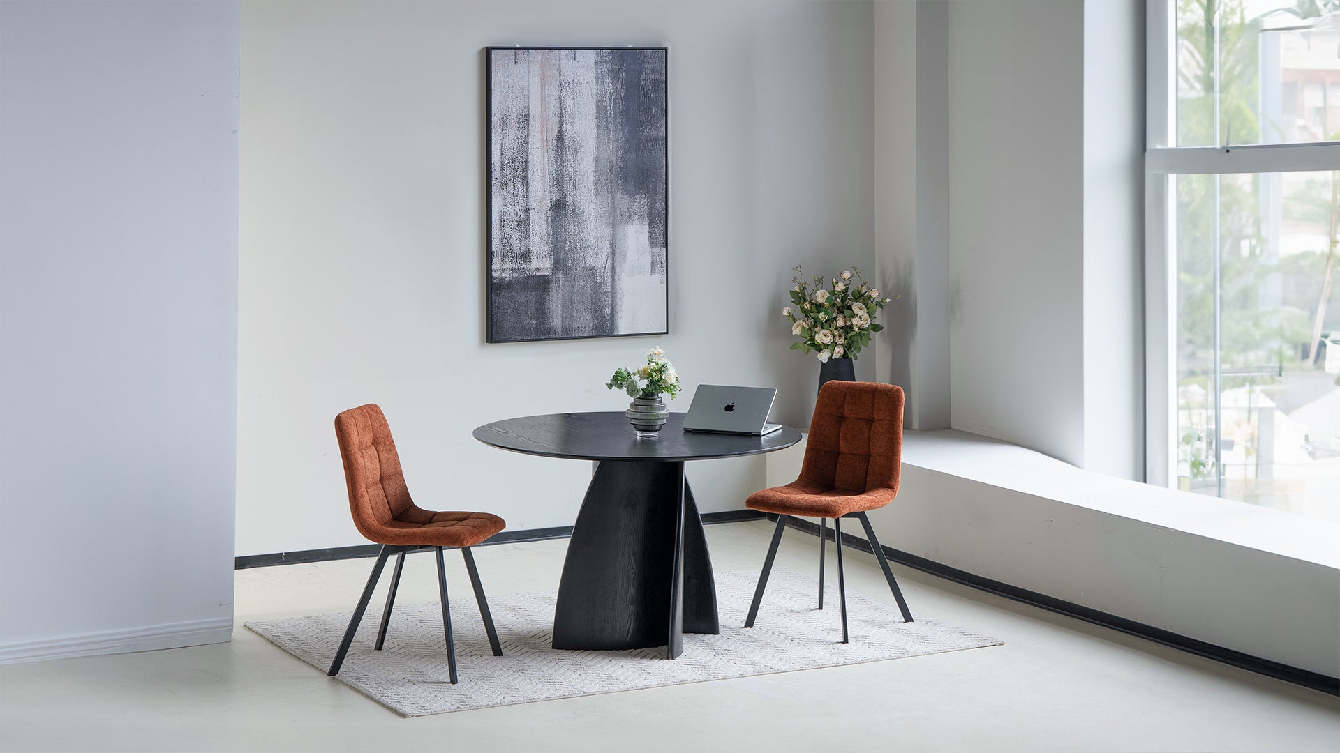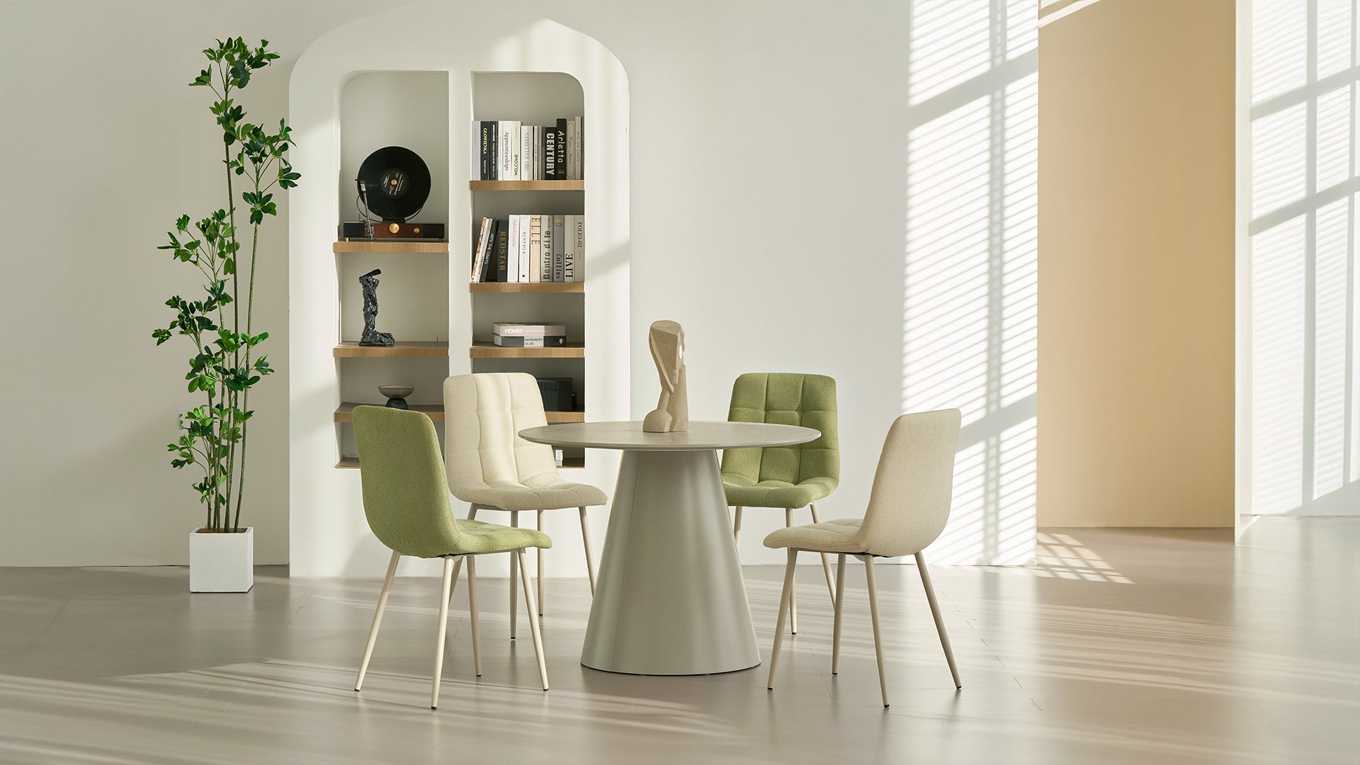 Gebouwd op een stevig stalen buisframe, ondersteunt elke stoel tot 150 kg, terwijl hij toch licht en gemakkelijk te verplaatsen is. De montage is snel en zonder gereedschap: bevestig de poten eenvoudig aan de voorgeboorde gaten. Machinewasbare pootdoppen beschermen je vloer tegen krassen – voor een stoel die even praktisch als mooi is.
