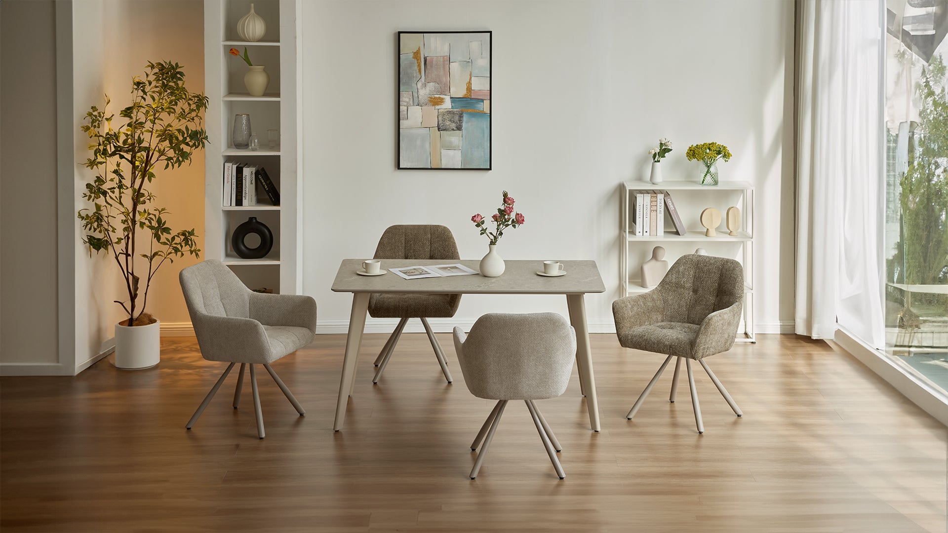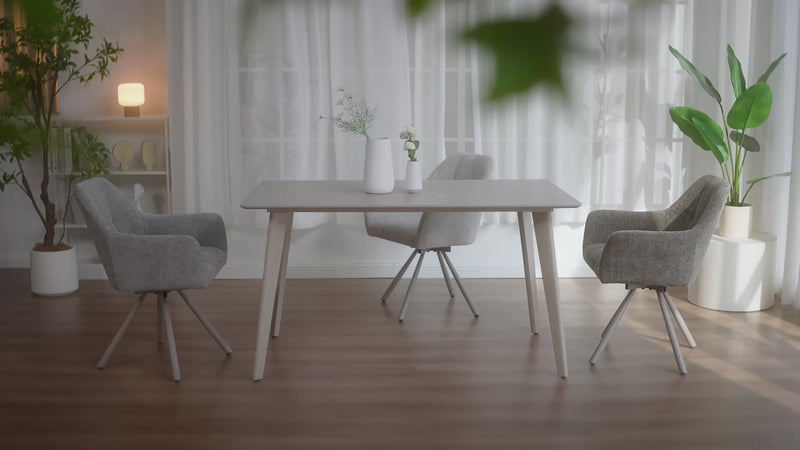 - 【360-graden draaibare zitting】 Door de 360-graden draaibare zitting van de eetkamerstoel kan de gebruiker vrij in elke richting draaien als hij met anderen praat, waardoor het zeer comfortabel en handig is.