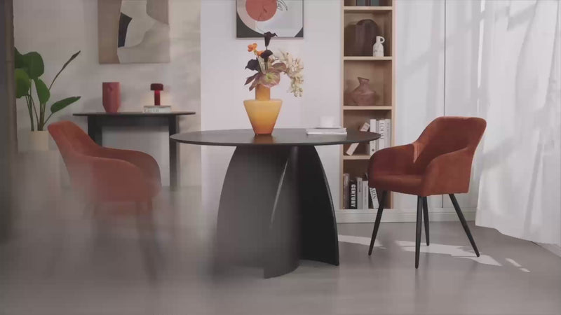 Het diamantstiksel voegt een moderne touch toe, terwijl de afgeronde rugleuning en de gewatteerde zitting ideaal comfort bieden voor een brunch met vrienden of een diner met familie. Het solide metalen onderstel zorgt voor stabiliteit en de vloerglijders beschermen uw vloer effectief tegen krassen.