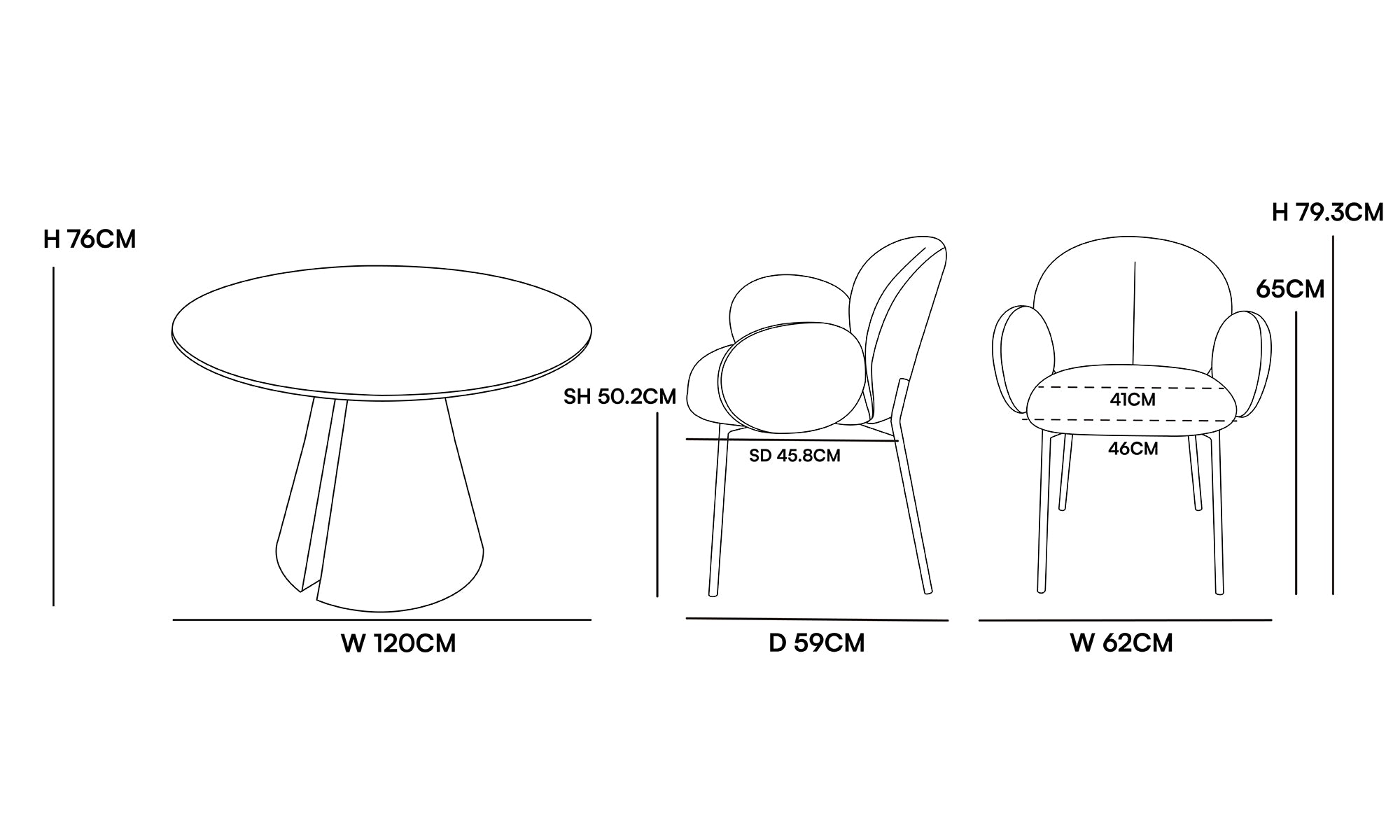- Productafmetingen: 62 x 59 x 50,2 x 79,3 cm