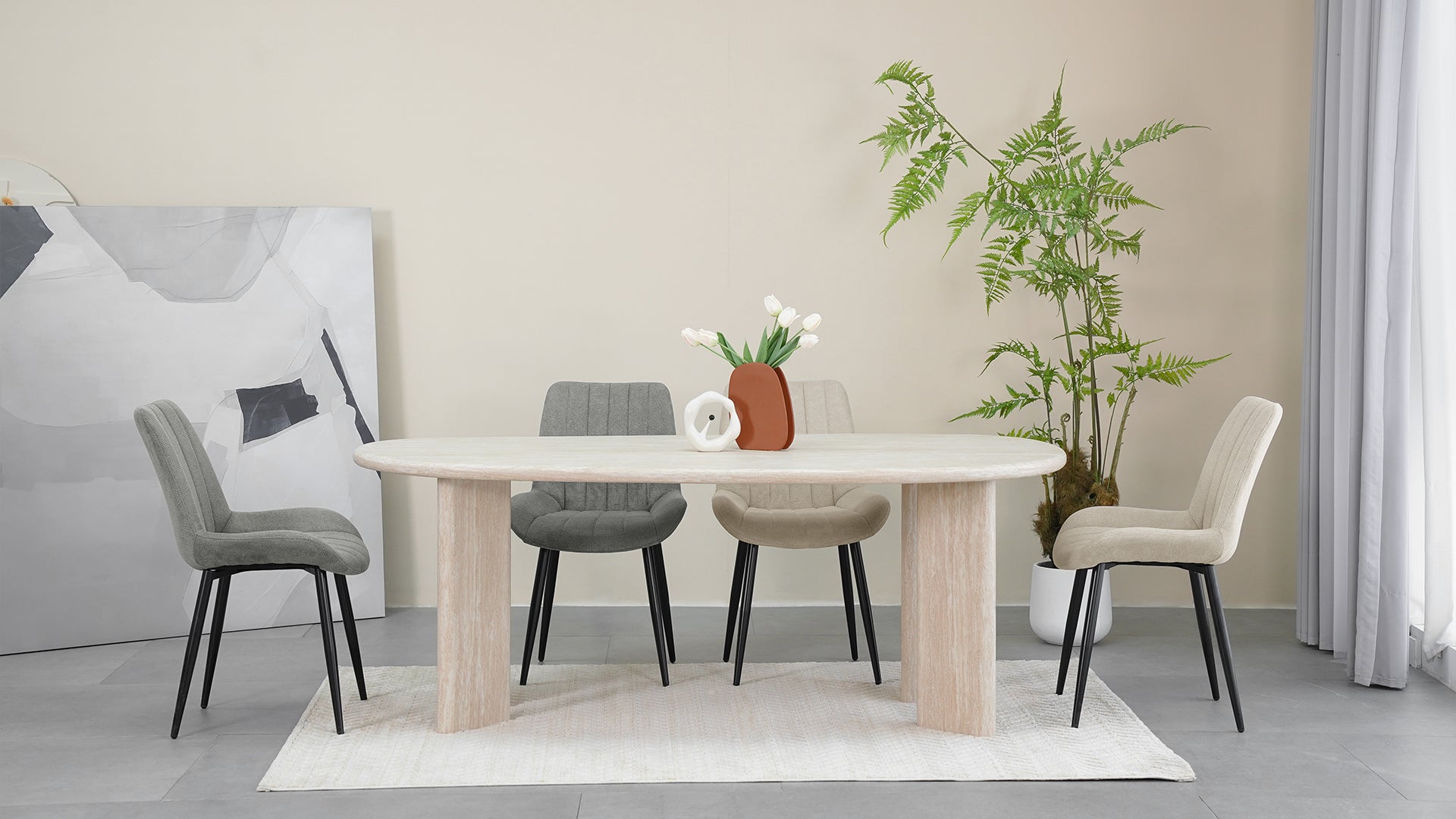 Wat Jarvis echt onderscheidt, is de unieke hoek en vorm – een gedurfd statement dat zich moeiteloos onderscheidt van gewone stoelen. Ondersteund door stevige, gekruiste metalen poten combineren deze stoelen stabiliteit en stijl.