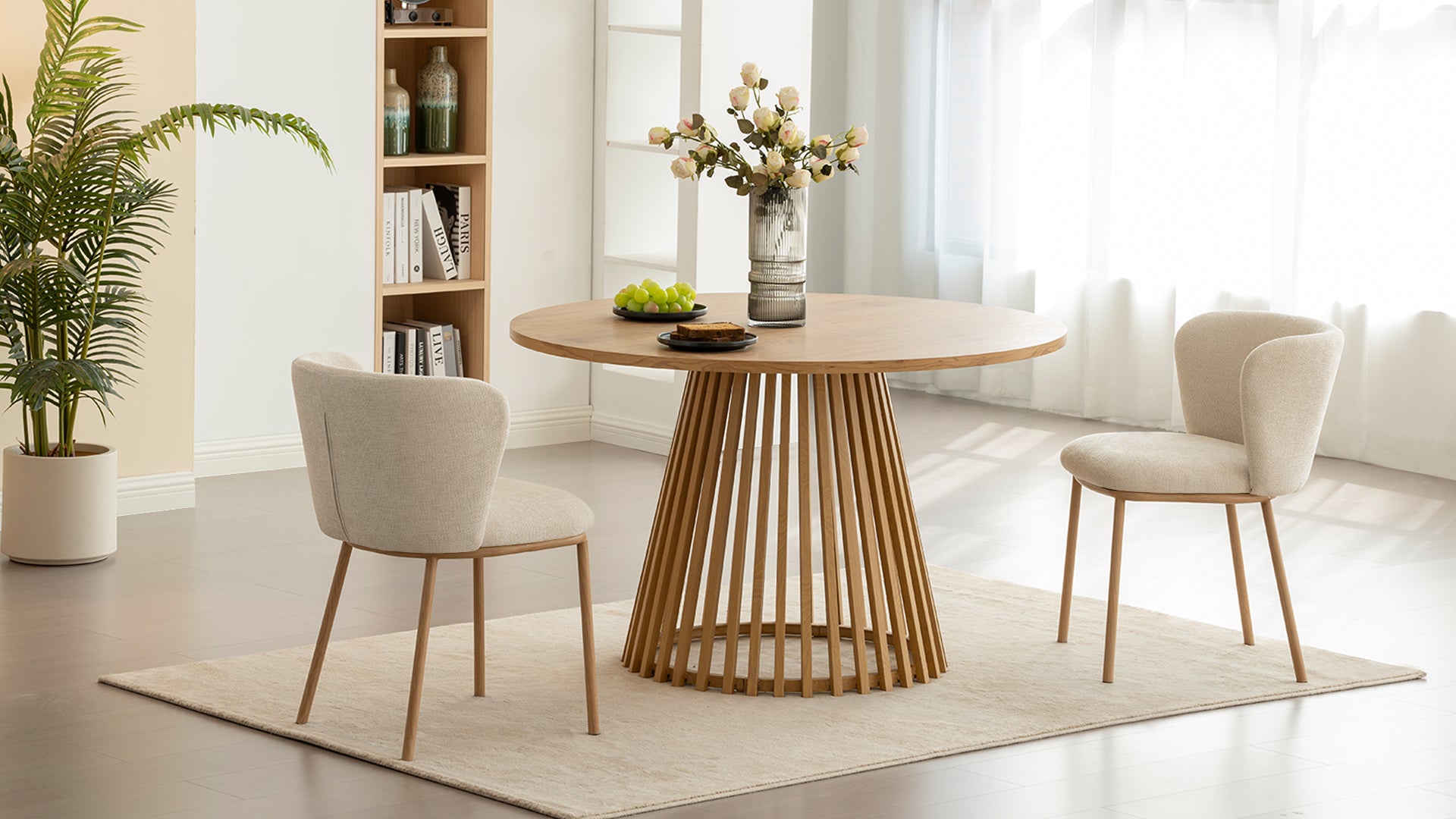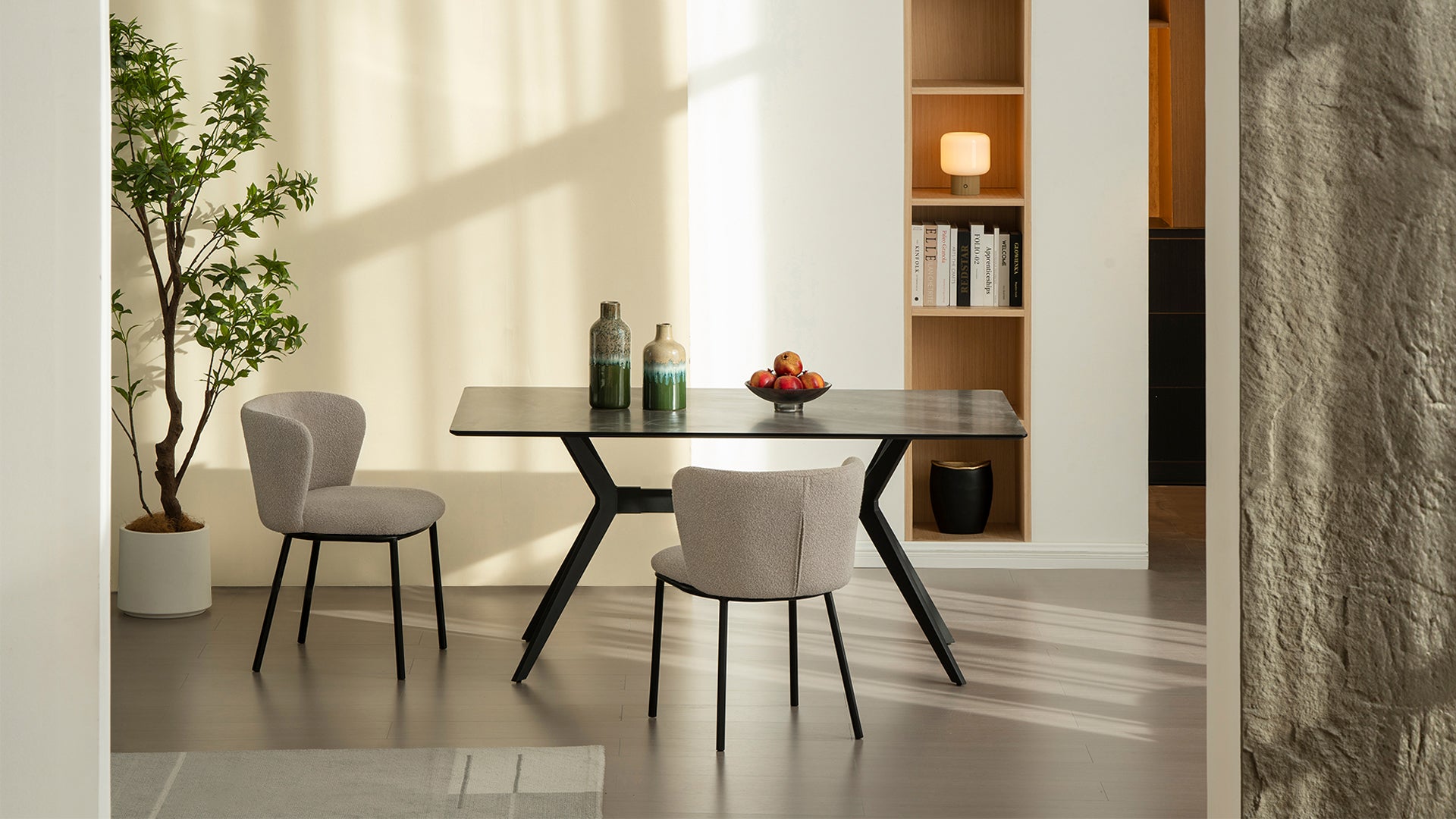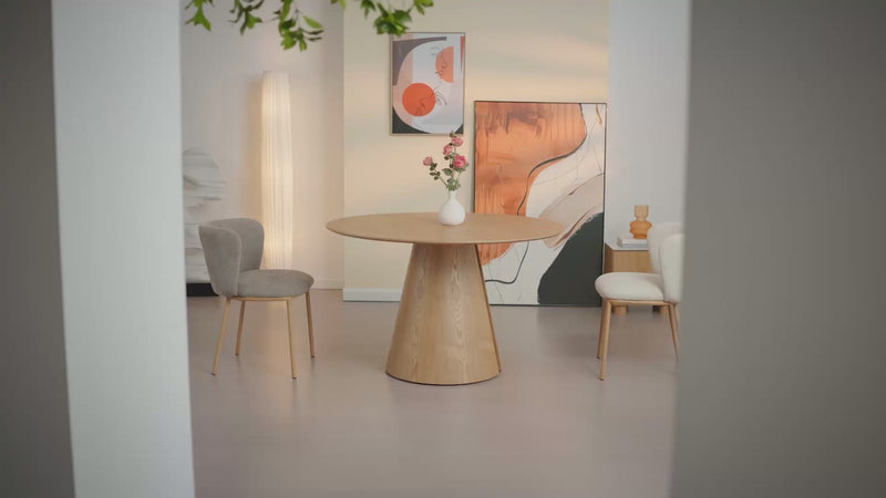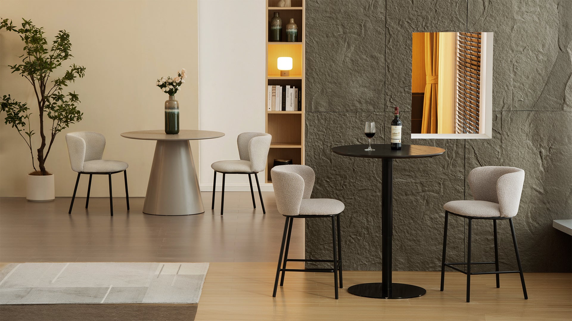 Bouclé eetkamerstoelen zijn helemaal in, en Karin surft erop met haar moeiteloze stijl. De tactiele stof omhult je met warmte, terwijl de nette stiksels een subtiel verfijnd detail toevoegen. Dit is het soort OFCASA eetkamerstoel dat er net zo goed uitziet op Instagram als aan tafel, en die designflair combineert met dagelijkse stevigheid.