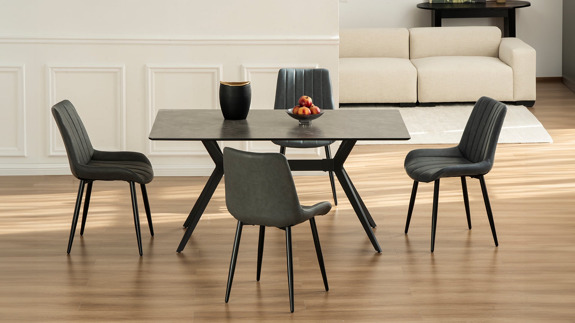 Laila rechthoekige donkergrijze marmeren eettafel (160 cm x 90 cm) & 6 Jarvis kunstleren eetkamerstoelen