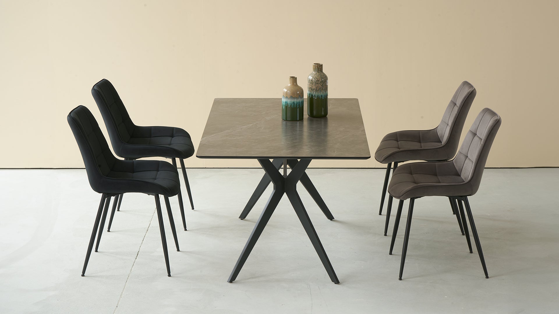 Laila Rechthoekige Eettafel [Donkergrijs Marmer] [160 cm]