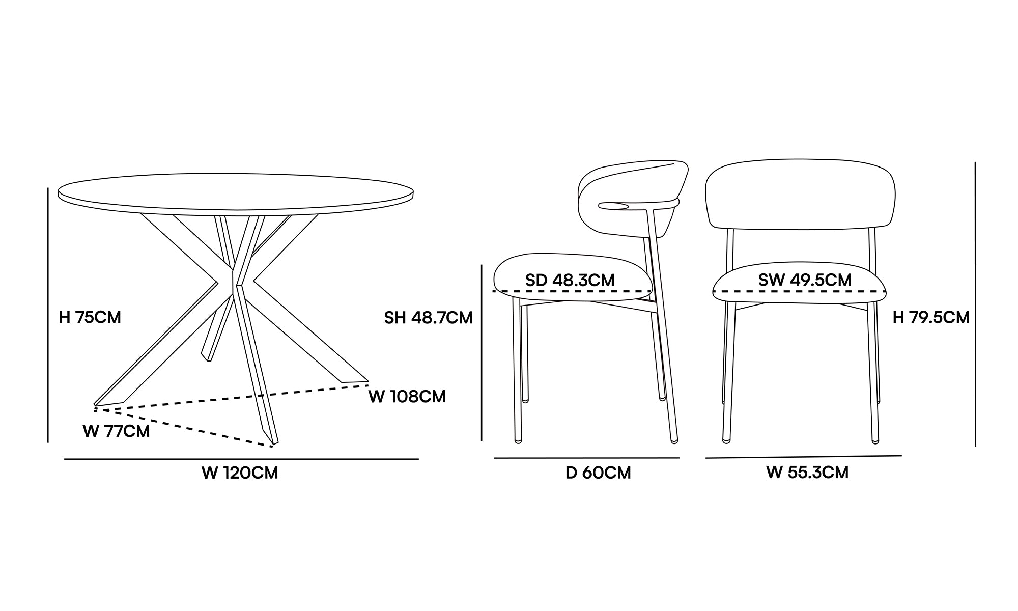 - Afmetingen: B55,3 x D60 x H79,5 cm