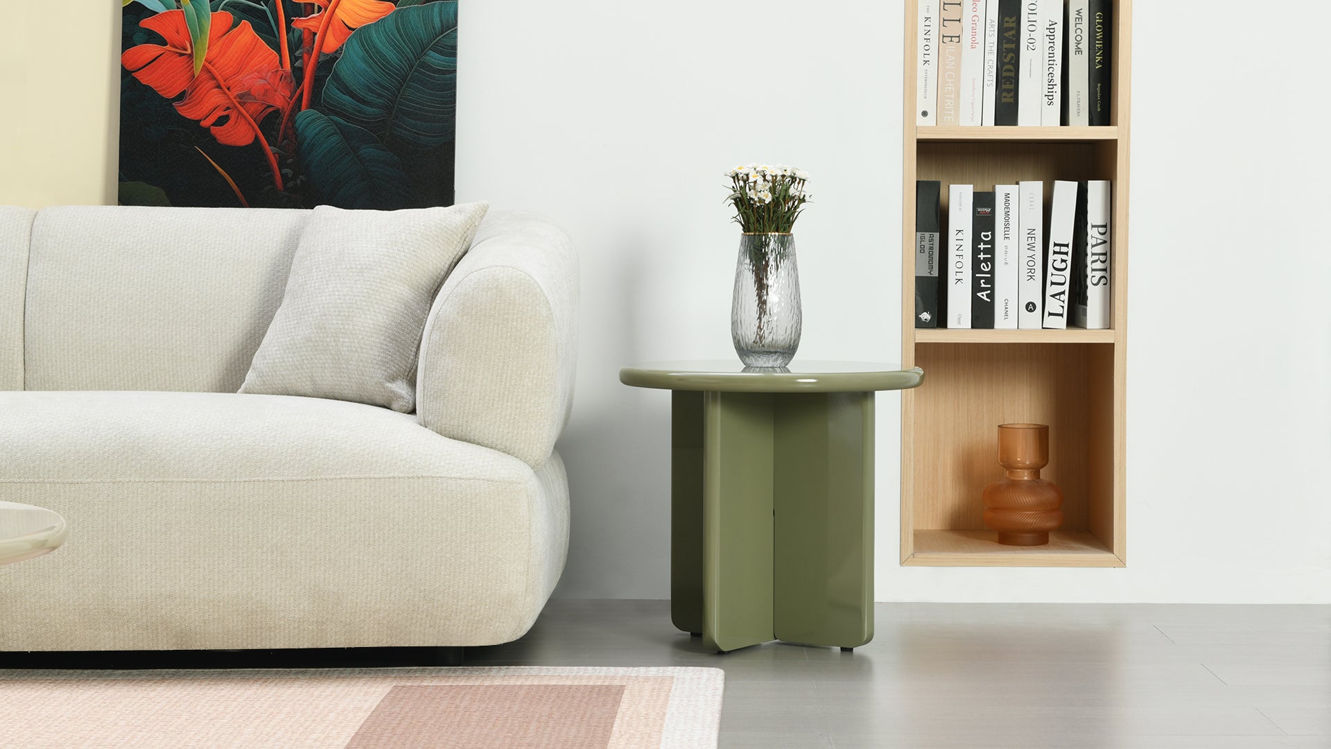 【Elegante esthetiek】De matte bijzettafel heeft een beige/paarsrode kleur, wat de ruimte een zeer trendy vitaliteit geeft en hem tot het middelpunt van de ruimte maakt.