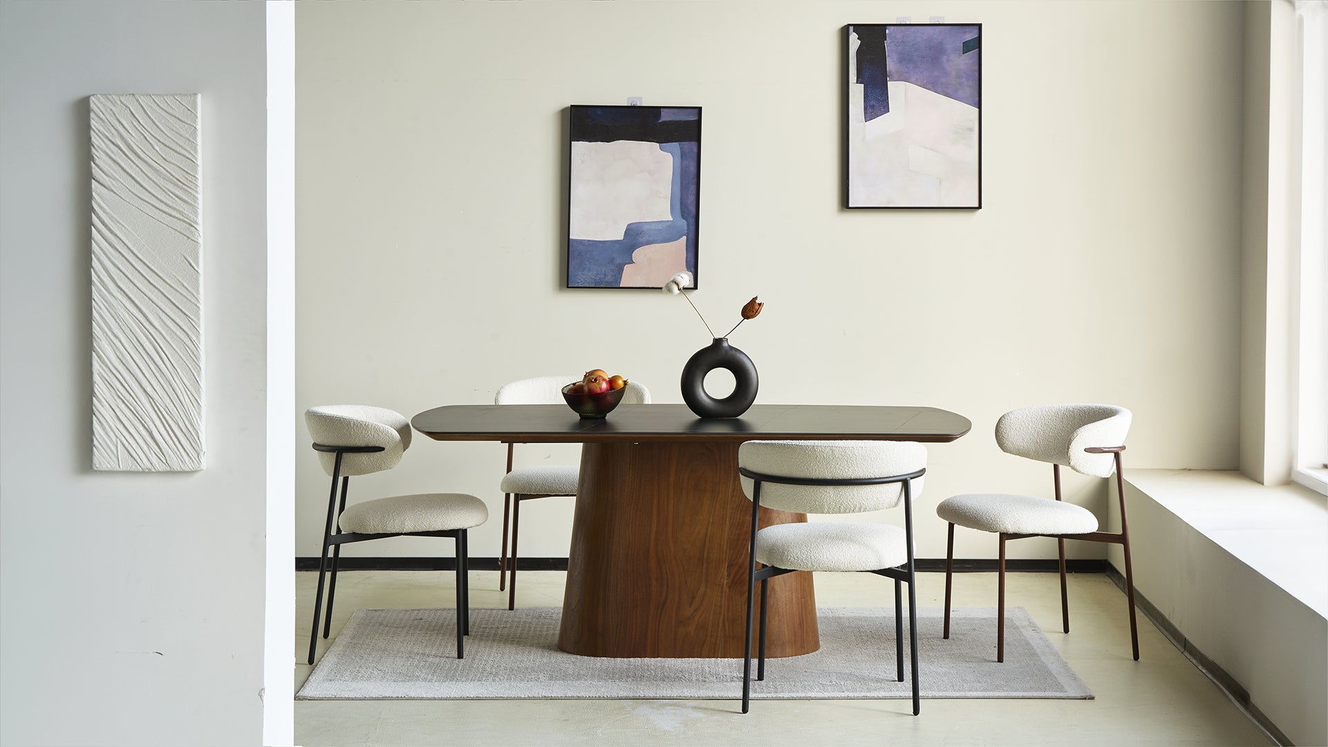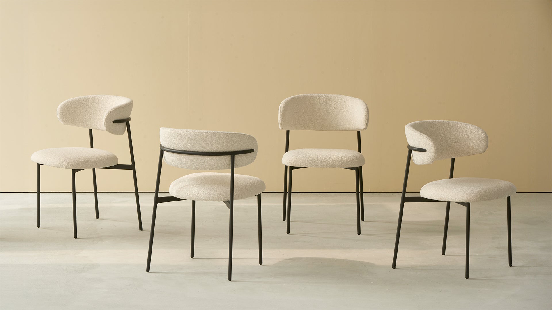 Op zoek naar een stoel die even uitnodigend als elegant is? Deze stoelen, bekleed met zachte boucléstof, geven elk interieur een warme touch, of het nu een stadsappartement of een landhuis is.